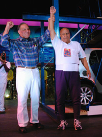 "Sri Chinmoy is truly unique and special. He has rediscovered the lost art of special strength feats and weightlifting. He has got the biggest, heaviest calf machine in the world. It is a miracle that this man can even support this kind of weight. He is really an inspiration to me."