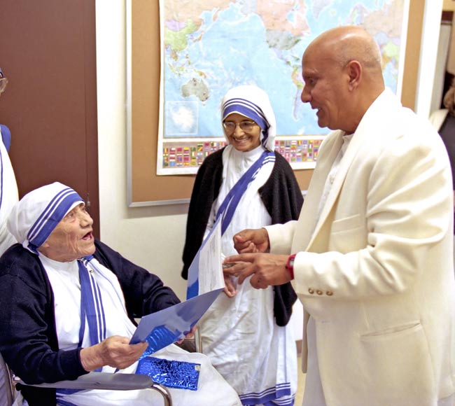 Just a few days before Mother's earthly departure, Sri Chinmoy called Mother Teresa for her birthday on August 27th, 1997. This was her 87th birthday (and also Sri Chinmoy's 66th birthday). A brief extract from their final telephone conversation:
